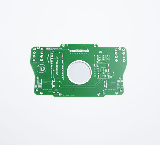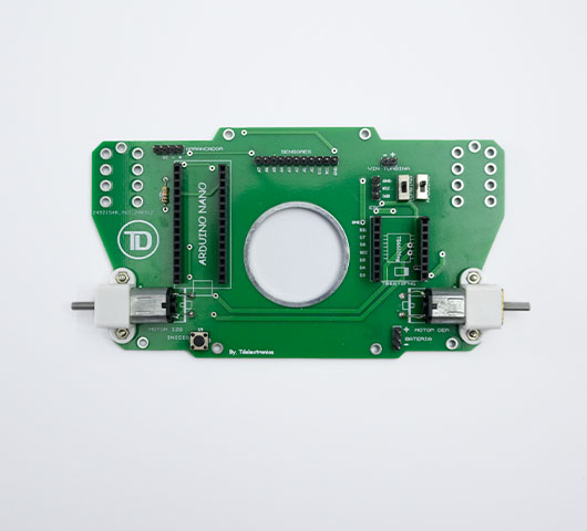 La baquela para carrito seguidor de línea con turbina de TD Electrónica es una placa PCB diseñada exclusivamente para proyectos de robótica educativa y experimental, ideal para estudiantes, docentes, makers y desarrolladores que desean ensamblar su propio robot desde cero.